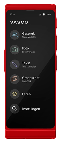 Met de spraakvertaler Vasco kun je direct communiceren in 82 talen! Spreek in de microfoon en het apparaat luistert en zal vertalen met geluid in de geselecteerde taal.